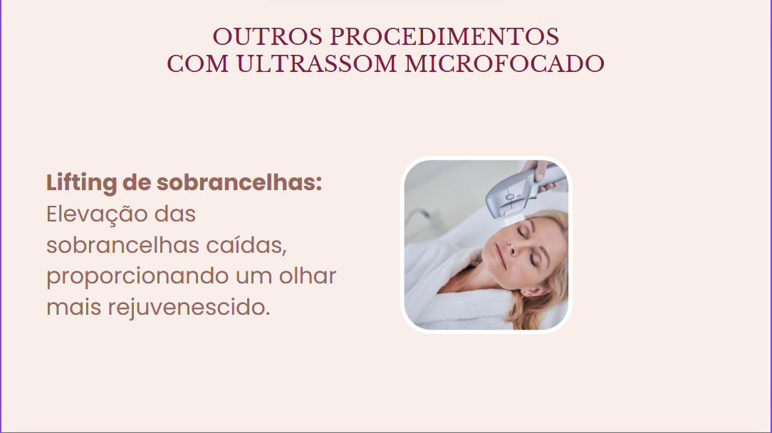 Elevação das sobrancelhas caídas, proporcionando um olhar mais rejuvenescido.